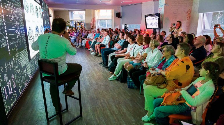 Открыло программу научно-популярное ток-шоу «Научный ринг», которое прошло в форме дебатов на тему «Превзойдет ли ИИ способности своего создателя». Модератором научных боев стала Лия Захарова, медицинский журналист, автор книги «Онколикбез», специалист по связям с общественностью Федерального центра сердечно-сосудистой хирургии Челябинска. Сергей Николаев, генеральный директор и сооснователь компании CyberPhysics, кандидат технических наук, отстаивал позицию «да, превзойдет», ссылаясь на экономические показатели и взрывной рост популярности нейросетей у не слишком усердных студентов. Его секундант Забава Устинова, ассистент кафедры теории корабля факультета кораблестроения и океанотехники, специалист отдела профориентации в Санкт-Петербургском государственном морском техническом университете, делала упор на то, что при выполнении рутинных операций с эффективностью ИИ мало что может сравниться.
